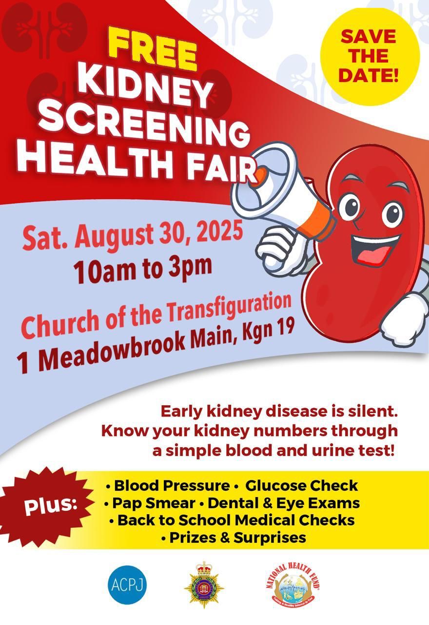 Free Kidney Screening! Free KidneyScreening + Add to Google Calendar + iCal / Outlook export Date Aug 30 2025 Expired! Time 10:00 am - 3:00 pm Category ACPJ Events Share this event Search for: